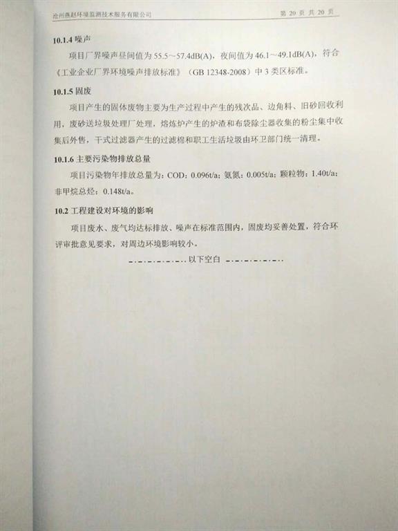 河北及時雨泵業有限公司鑄造分廠升級改造項目竣工環境保護驗收意見公示